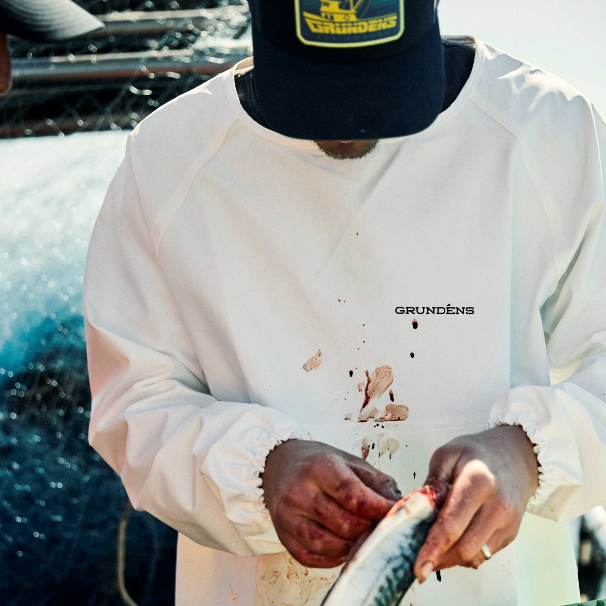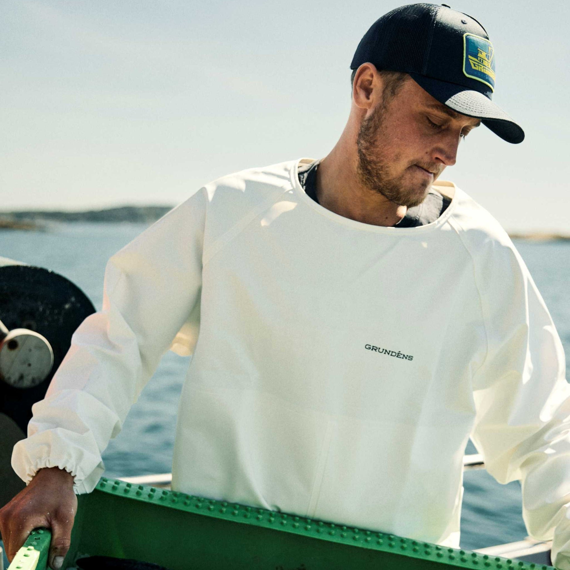 Apron with full upper (including sleeves), elastic cuffs, double front for extra durability and elastic band in the back and quick release.